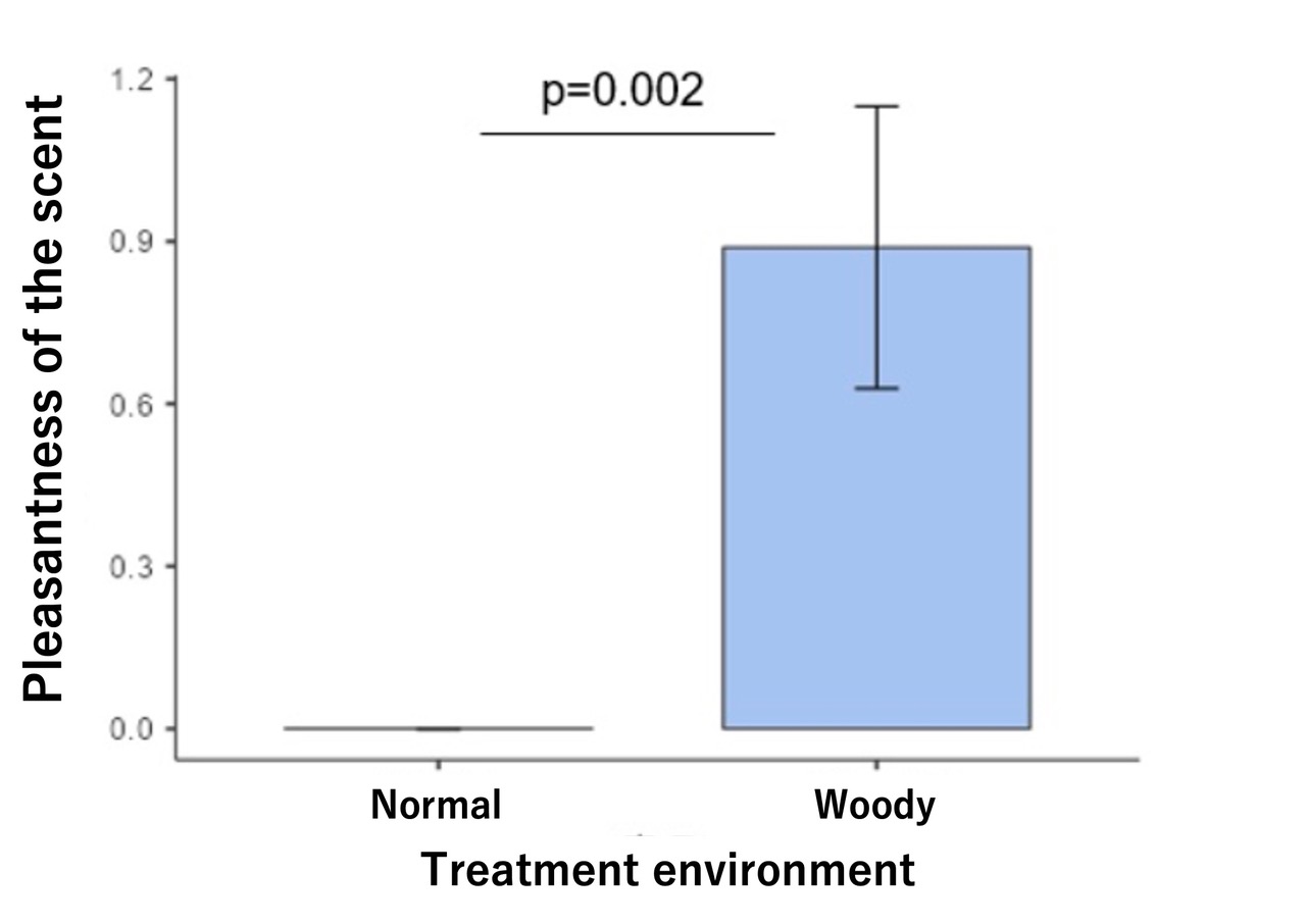 ・The "room friendliness" was measured in terms of (1) comfort, (2) fragrance, (3) temperature, (4) space, and (5) brightness, but no differences were observed in any of the categories other than (2) fragrance.